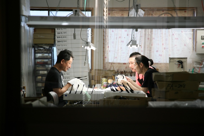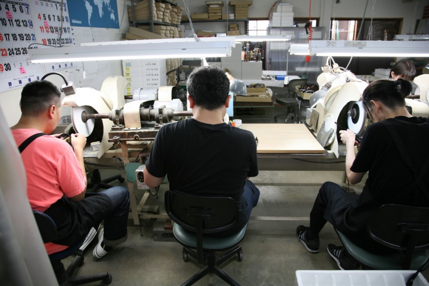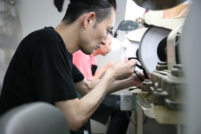 青山を挟み三人並び、バフと向き合うお二人を見ていましたが、複雑な造形をする240番の磨きにとても悪戦苦闘されていました。