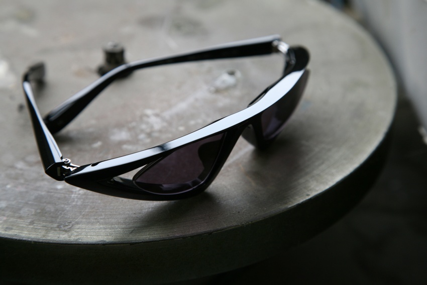 大きく弧を描くブローラインと、三角形の玉型が特徴的な380。なるべく少ない要素で全体をまとめ上げたので、ダイレクトに形そのものの“新しさ”を感じていただけると思います。