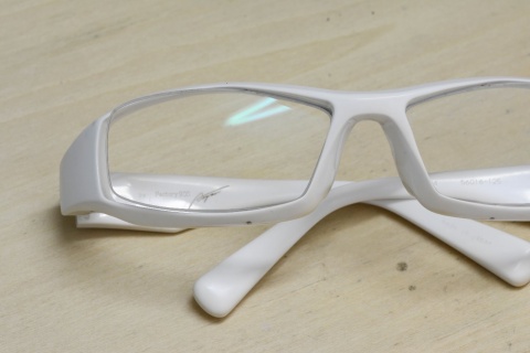 過去のブログでもご紹介したことがありますが、白いフレームは長年ご使用いただくなかで、汗や油分、整髪料によって部分的に黄色く変色が起こります。