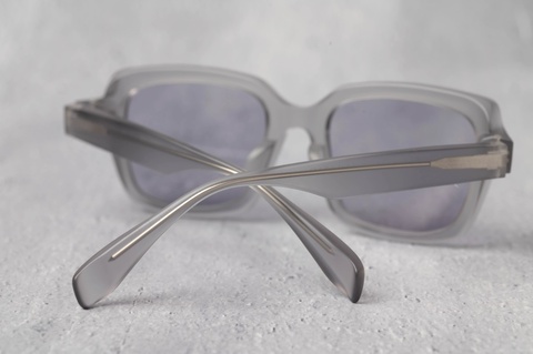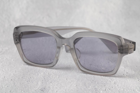 また、フレームの表面は全カラーともにマット加工を施してありますが、テレビジョンカット面のみに艶を残し、フラットなフロントにコントラストが生まれました。本来、こういった直線的でエッジーなモデルはシンプルといえどもクセが強くなりがちですが、マットカラー特有の肌馴染みの良さがそれらを打ち消します。