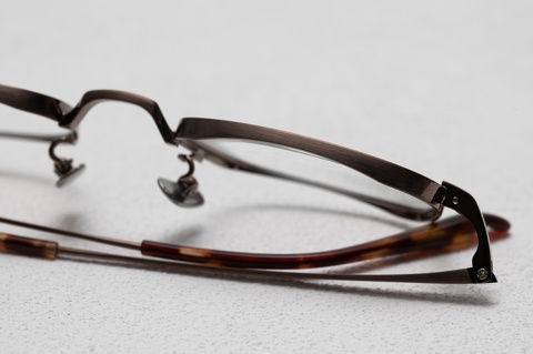 非常にシンプルで一見FACTORY900らしからぬデザインに見えますが、是非注目していただきたいのがブリッジのディテールやリムのラインです。もともと4㎜厚の強度リムを採用し、シンプルなデザインのなかにも重厚感が感じ取れますが、そのリムの形状にもデザイナー青山の拘りが垣間見れます。