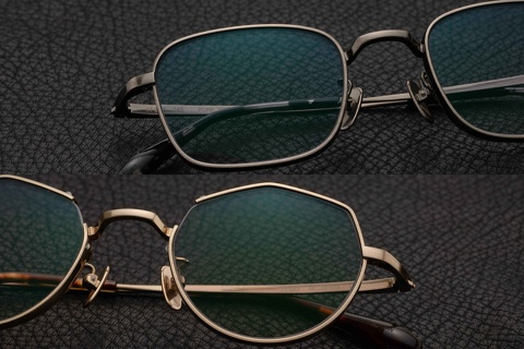 改めて今回のスタイルサンプルをご覧いただくと、レンズの表面にギラツキが少ないことがお分かりいただけると思います。今回は高級感のあるメタルフレームに合わせ、使用したカラーレンズはマルチコート付きのレンズを使用してみました。レンズのコートに関しては好みが分かれるところだと思いますが、こういった細かい点について触れるのも専門店ならではの拘りです。