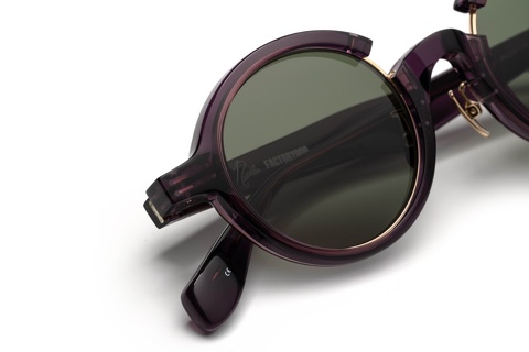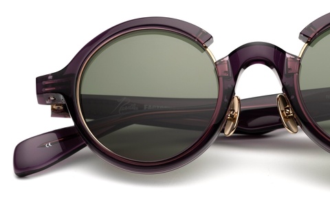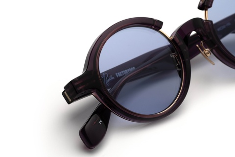 フレームカラーは「RF-064C」と同じくNEEDLESを象徴とするパープル、ただし単色のパープルとなりフレームカラーの表記も「col.729」になっています。ラウンド型をベースとした「RF-170」ですが、リムの一部を切り離すことで生まれる違和感が大きなアクセントとなり、クラシカルなスタイルのなかにも新しさが感じられます。