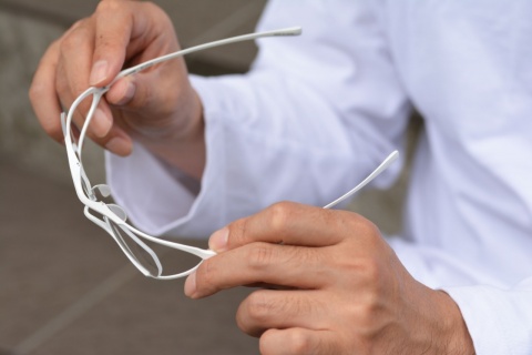 “熱く溶けた滑らかな金属を硬質で鋭利な形状に凝縮したかのような、しなやかな造形のイメージ” をそのままメガネフレームで再現されています。