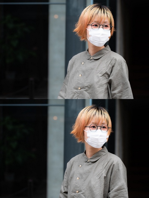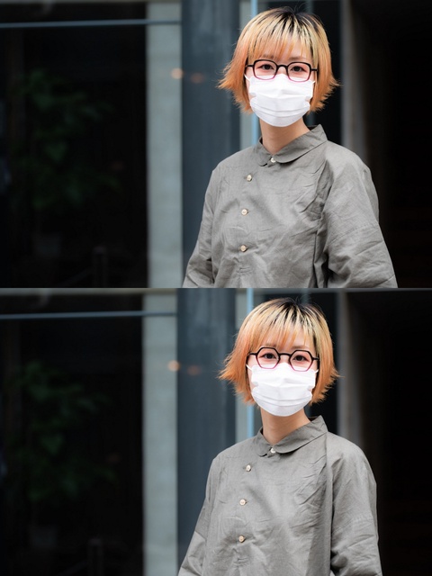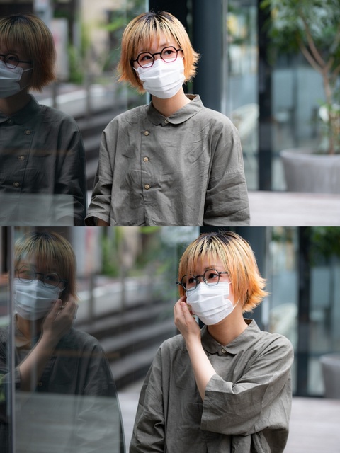 とはいえ、ここ最近女性のお客様が徐々に増えていることもあり、今回はスタッフ松本に実際に2つのモデルを掛け比べてもらいます。ただし、このコロナ禍において、マスクをすることが日常になり、この状況がこれからもしばらくは続くことを想定し、今回の掛け比べはあえてマスクをした状態でご覧いただきます。