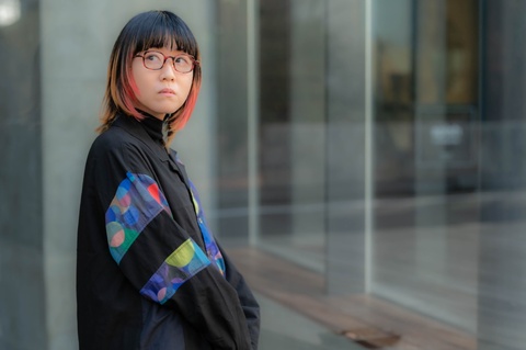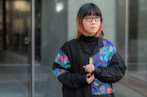 先にご紹介した「col.723」に比べ、松本の印象に変化が見られます。ご覧のように飛びっきりの笑顔ではありませんが(笑)、ナチュラルな表情にもどこか柔らかさを感じます。同じメガネには見えない、まさにカラーのマジックとはこのことです。また、もはや日常となったマスク生活において、白のサージカルマスクは若干肌色が暗く見える傾向にあるようですが、こういった鮮やかな色合いはマスクをした状態でも目元を明るく照らしてくれます。