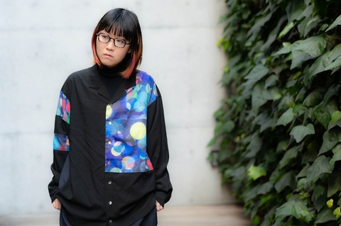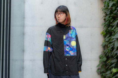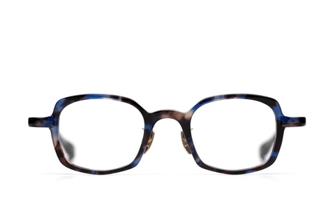 もともと「Ai」には「col.001」(黒)の用意がなく、その代わりとしてカラーバリエーションに組み込まれたのが「col.112」(黒/グレーツートン)です。Special Editioncol「col.723」は、ブルーをベースにした柄系の生地になりますが、もともとフロントのリムやテンプルが細いこともあり、実際に掛けてみると柄の印象はそこまで強く出ることもなく、見た目以上に合わせやすいカラーといえるのではないでしょうか。