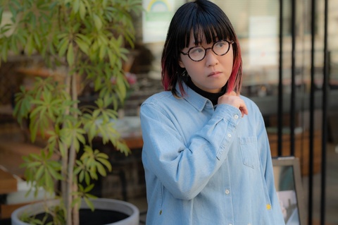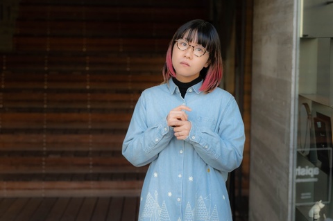 初見での印象は、お顔の表情がボケてしまうのでは?と恐る恐る撮影に入りましたが、実際にファインダーをのぞき込むと思っていた以上に顔色がボケることなく、むしろ明るく感じました。乳白色と柄が不規則に混じりある色合いが適度なメリハリを与え、松本に関しては通常カラーよりも掛けこなせている気がします。また、カジュアルな印象になりがちなハッキリとした柄系のカラーですが、むしろ上品な印象に。ワタクシ自身この撮影を通してそのイメージが大きく覆ったところです。