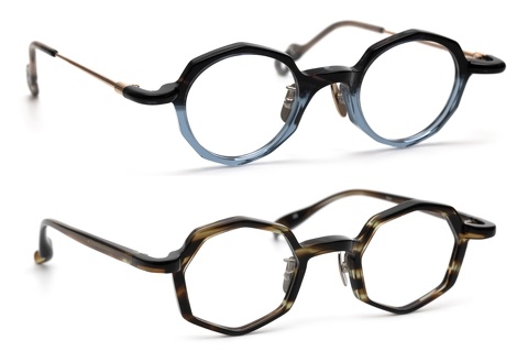 レンズシェイプですが「Ren」は八角形、「Hachi」は、厳密にいうとレンズの内径はボストン型に近く、我々は多角形と呼んでいます。両モデルは、一見ポップに見えますがそこまでカジュアルになりすぎず、特に「Hachi」は、メタルテンプルを使用したことで、カラーによおってはシックな印象も与えてくれます。