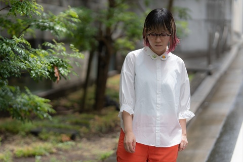 もともとグリーン系のカラーとパープル系のカラーで迷っていたようですが、結果としてより目元がキレイに見えるトゥルーバイオレットに。松本いわく「RF-058」に比べ、サイズの小さい「Hachi」を掛ける際はアイシャドーの塗る範囲を狭くしたとのこと。つまりメガネのデザインによってメイクも変えているということですね。
