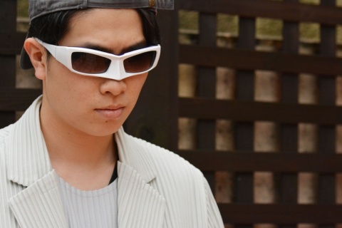 圧倒的な存在感を放つ白の「FA-081」MASK、実際のところ掛けこなすには少々ハードルは高いと思われますが、こんなスタイリングはいかがでしょうか。
