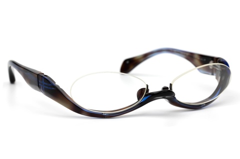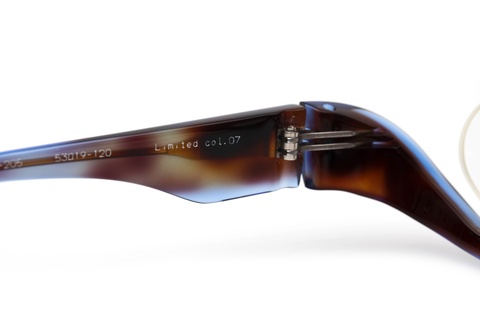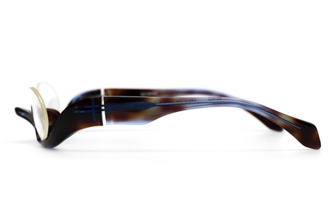 トップのクリアブルーが背面のバラフと混じりあい、光に当てることで背面に見えるバラフの模様が浮かび上がます。「FA-095」とは異なる流麗なフォルムを引き立てる美しい色合いは、アンダーリムとはいえ使い勝手の良いカラーであり、実用性も意識した限定カラーとなります。