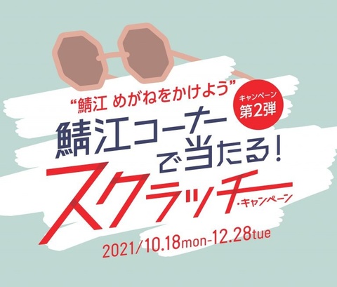 昨年実施された「さばえ めがねをかけようキャッシュバックキャンペーン」に続き、今回は第2弾として、本日より12月28日(火)まで参加店舗3000店によるスクラッチキャンペーンがスタートします。前回に引き続き、我々東京・大阪の両直営店も参加いたします。