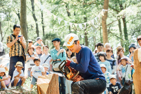 ・こどもが遊べるプレイゾーン(ブランコ、ハンモック、テント、竹ぽっくり作りWS等)や薪で沸かした足湯やサウナ体験、建築家や林業家、そして写真家の浅田政志さんも登壇され、お話を聞くことができます。短時間で学べるWS「森の学校」(チェーンソーアート実演、森散歩、鳥や昆虫のお話など)、林業機械体験(こどもたちの乗車体験もあり)、森の図書館、アート体験などなど、家族や友達と1日過ごせます!もちろんお一人様でも!