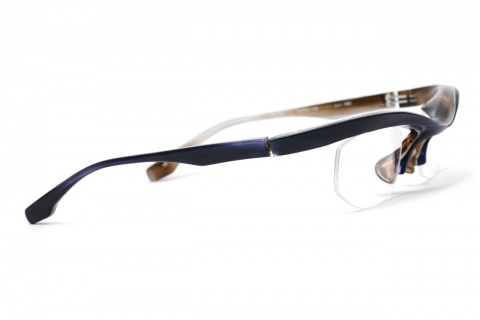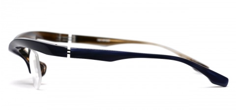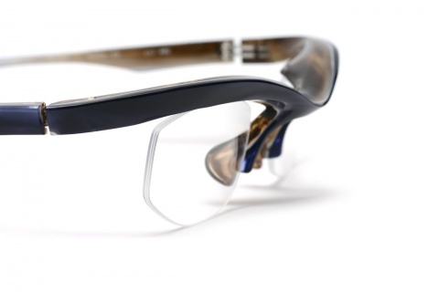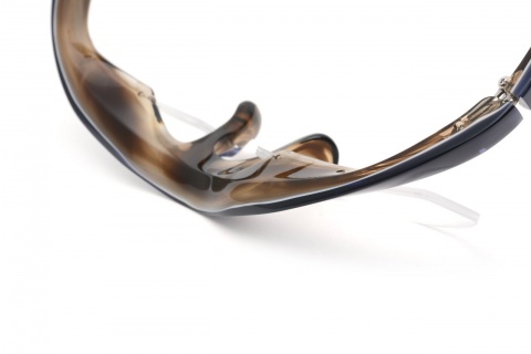 無駄を省きすっきりとした正面と対比し、フレームの奥行き(厚み)は十分な強度を持たせ、且つ、計算されたフレームカーブによりしっかりと顔をホールドしてくれます。