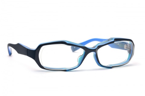 col.453は、黒と青とクリアの色味が重なった生地です。真ん中の青の生地がFA-075の”段”と合わさり、フォルムを縁取るラインを描きます。