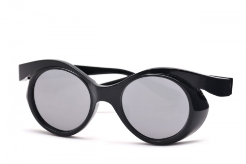 1980年代のモードファッションからインスパイアされたサングラスモデル。丸い玉型にレトロ感を感じながらも造形はゴーグルを思わせるフードがついてスタイリッシュな雰囲気に、、レンズにはミラーレンズを入れたことでフューチャーなスタイルに仕上がっております。