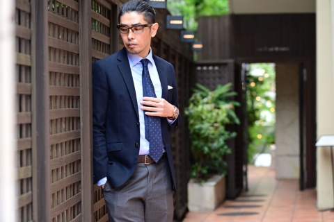 また、ちょっとしたことですが、若干タイトめな着こなしを基本としたジャケットのサイズ感もポイントです。
