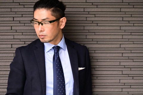ソリッドで勢いのある流線形の「FA-143」は今のトレンドであるクラシックフレームとは全くスタンスが異なりますが、スーツスタイルと見事に調和していると思います。