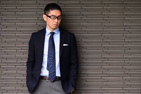 キリっとしたシャープな印象はもとより、清潔感のあるそのスタイルが、スーツはもちろんどういったシチュエーションでも対応できる使い勝手の良さが大きな魅力です。