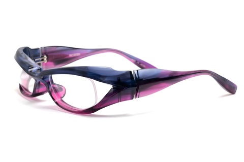 上下に変化するグラデーションカラーによってアンダーリムに見えるカラーは何とも表現しにくい色合いですが、透明感のある薄い紫に模様が交わり、言葉にするならばグレーとクリアグレーの中間といったところでしょうか。
