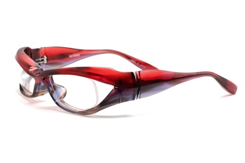 トップリムからアンダーリムに掛けて上下に変化するグラデーションカラーですが、所々にササ柄のような模様が確認できます。「col.751」に比べ彩度が高く、「FA-240」の造形によってトップリムの赤はより鮮やかに感じます。