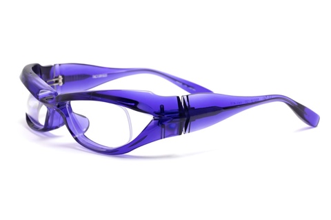 こちらの鮮やかな青紫はレトロシリーズの人気モデル「RF-064」で採用されている「col.417」 (バイオレット)です。見た目はご覧の通り透け感のある鮮やかな色合いですが、フロントの表面にダイヤモンドカットをほどこした「RF-064」とは全く異なる印象になりました。