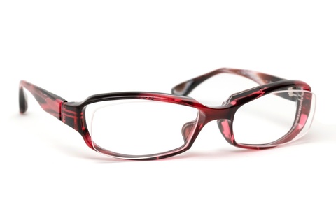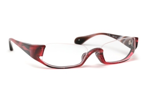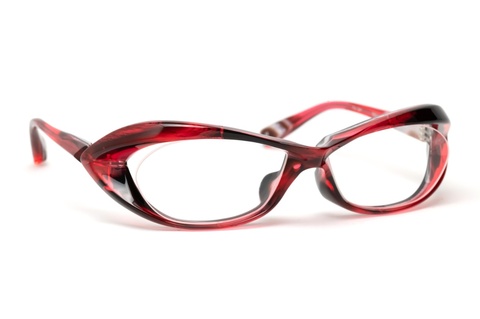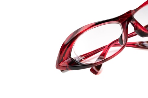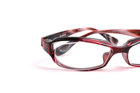「col.259」(赤)、今もこのカラーをお探しの皆さんもいらっしゃるようですが、このピング/ホーン柄も実際に掛けてみると、肌色と交わることで見た目以上に落ち着いた色合いになることがお分かりいただけるかと思います。先にご紹介した2つのモデルにもいえることですが、ピンクというだけでハードルが非常に高く感じますが、背面のホーン柄が大きな役割を担っていることを今回の撮影で改めて感じた次第です。