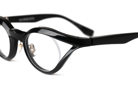 ご覧のように、レンズシェイプは両モデルともクラシカルなデザインをイメージするラウンド系になりますが、レンズを支えるフロントからテンプルまで、FACTORY900ならではの流線形のフォルムによってカタチづくられています。一言で表すのであれば、900ならではの立体造形を用いつつも今の時代感を意識した新たなスタイルといっても過言ではありません。