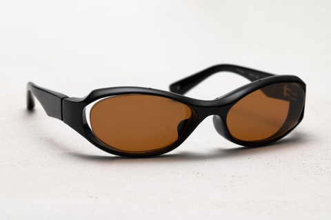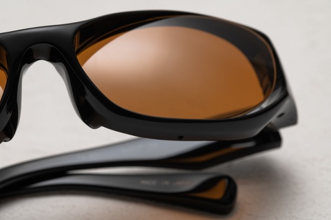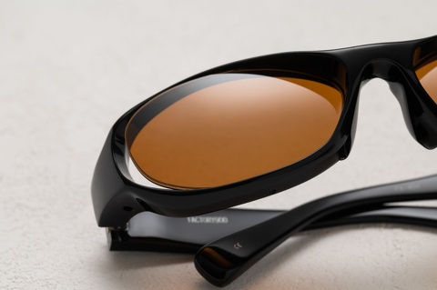 レンズ濃度は70%とやや濃いめではありますが、一般的なブラウン系のカラーよりも彩度が高く、いわゆるコントラストを高める色合いです。先程の”ブラック”に比べ、フレームカラーとのコントラストも高まり、フレームのデザインがより引き立ったように感じます。