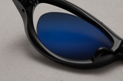 今回ZEISSカラーからチョイスしたのは”ブラック”、濃度はなんと95%。そもそも一般的なカラーサンプルでは、黒に近いレンズカラーといえばどうしてもグレーになってしまいますが、ZEISSカラーには、通常の”グレー”のほか、”ブラック”が存在します。スポーツサングラスのパイオニアともいえるオークリーのブラックイリジウムを彷彿とさせるような色合いです※ZEISSカラーはミラーコートは対応しておりません