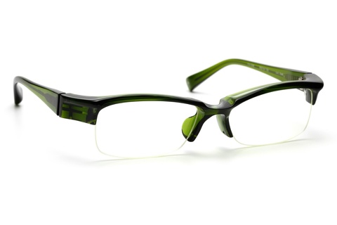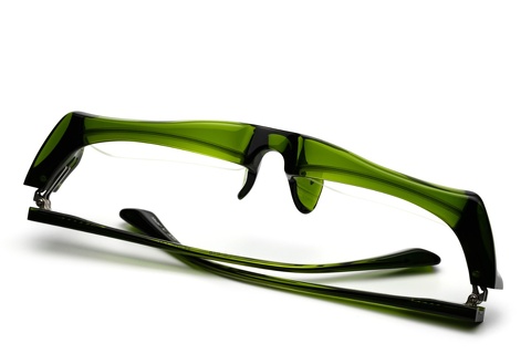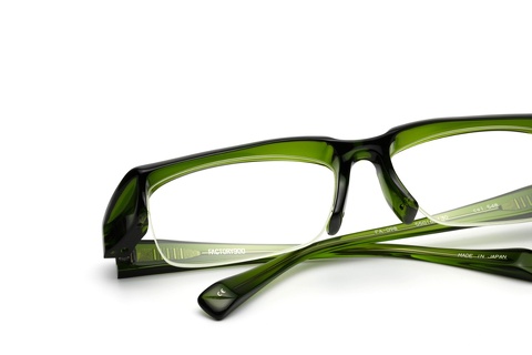 しかし、落ち着いたデザインとは裏腹に、イタリア マツケリ社の鮮やかでポップなアセテートで構成されたカラーバリエーションは、当時コアユーザーの皆さんからご好評をいただきました。現在は特徴的なカラーが相次いで廃色となったため、「col.548」(クリアグリーン)で撮影を行いました。