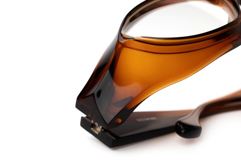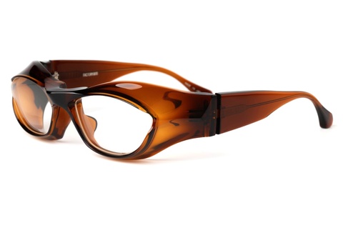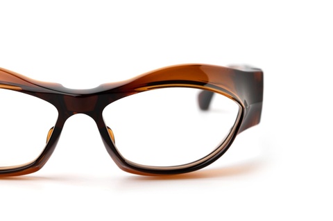 これだけボリュームがあり重厚に見える「FA-068」ですが、余分な肉厚を削ぎ取ることで軽量化に繋がり、結果として見た目以上に軽く感じられると思います。あくまでメガネとして度付き対応を前提にレンズカーブも4カーブ設定とし、より多くの皆さんに掛けていただけるようにデザインされています。