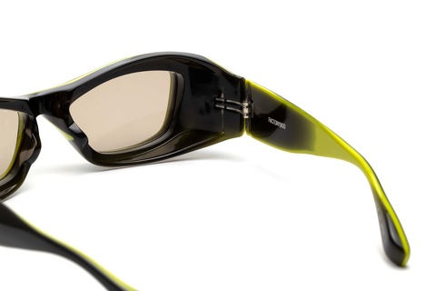 どっしりとしたボリュームから放たれる存在感は、つい手に取ることを躊躇ってしまいがちですが、実際に掛けてみる見た目以上にお顔との一体感を感じ取っていただけます。例えるならば・・・実用化に向けて着々と進歩を遂げているVRゴーグルのようでもあり、「FA-069」は10年先のデザインといってもあながち間違いではないのかもしれません。