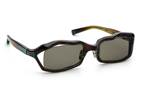 特にカラーレンズが加わることでスクエア型のシェイプはより際立ち、特徴的なフロントリムの形状は目に触れにくくなるようです。なにより大き過ぎず、小さ過ぎず、このサイズ感はメガネとしてはもちろんサングラスとして考えても絶妙なバランスによって成り立っています。