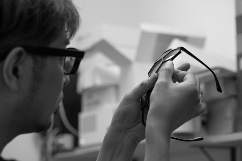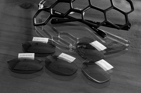 お客様とご相談のもと、1枚1枚カラーレンズの色合い・配置を検討し、レンズを発注。
