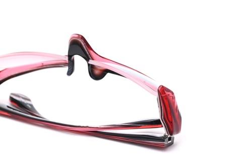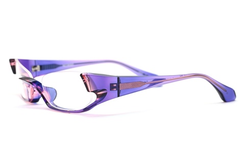 サイバースペースをイメージさせるカラーで、FA-095の造形と相まってメカニックでフューチャリスティックな印象を受けます。かといって使いにくいカラーではなく、かけると肌色と交わることでトーンが落ち着きます。また、裏側のピンクがお顔を照らし、お顔を明るく見せる効果もあります。