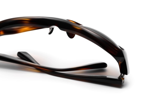 ご覧のようにブロウラインがエッジのある直線的なラインになり、掛けこなしもハードルが高く感じる皆さんもいらっしゃるかと。ただし、このストレートなブロウラインは、近年ラグジュアリーブランドをはじめとするハイブランドのサングラスでも目にすることがあり、今から10年以上前のデザインとは思えない新しさを感じます。