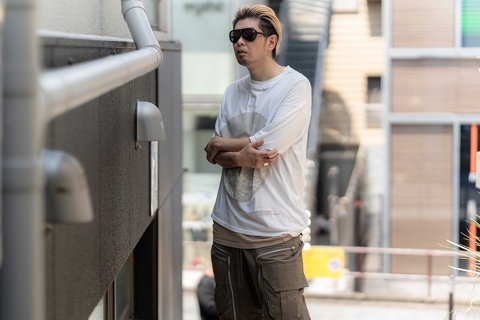 実際に掛けてみるとトップリムの直線的なラインがより強調され、どこかサイバーな印象さえも感じられます。むしろ王道なティアドロップ型という点では「FA-135」の方が近く、「FA-134」はある意味変則的なシェイプではありますがその分個性のあるファッションとも相性はバツグンです。
