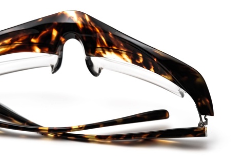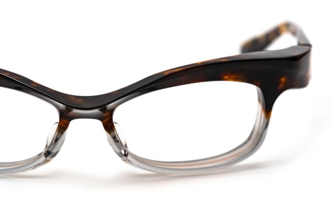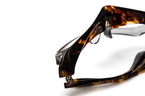 角のようにせり出たブリッジ、キレのある流れるようなラインが非常に印象的な「FA-143」は、FACTORY900らしいフューチャリステックなデザインですが、クラシックフレームで多用されるバラフツートンを用いると、途端にクラシカルな印象も感じられます。