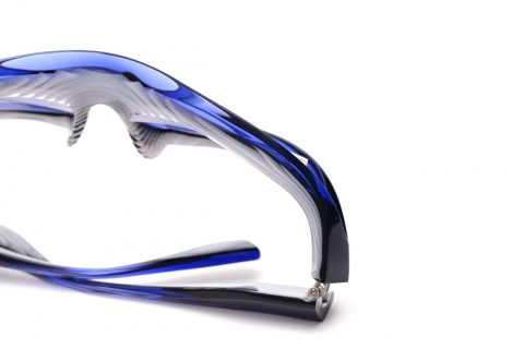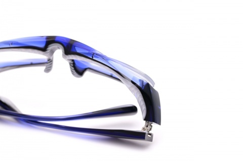 ご覧の通り肌色とフレームのカラーが混じり合い、鮮やかなブルーは落ち着きのある濃紺に変化します。