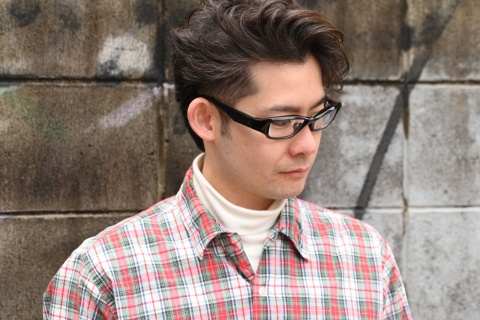 スタイルサンプルをご覧通り「FA-231」のグレーササは、実際に掛けてもそこまで生地の色合いも暗くならず、透け感を維持しながら掛けれることが魅力です。同じグレー系でも「col.425」は、お顔にのせることで見た目以上に暗くなってしまうため、定番カラーとはいえ中々お選びいただけないもどかしさを感じていましたが、このグレーササに関しては1年後の評判が今から楽しみなところです。