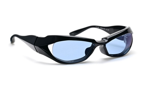 濃度44%のカラーレンズですが、ご覧の通り目の様子も分かるほどの濃さになり、ブルー系特有の鮮やかな色合いによって抜け感のあるスッキリとした見え方に、普段はあまりメガネを掛けないという関口さんも見え方は全く違和感がないとのことでした。