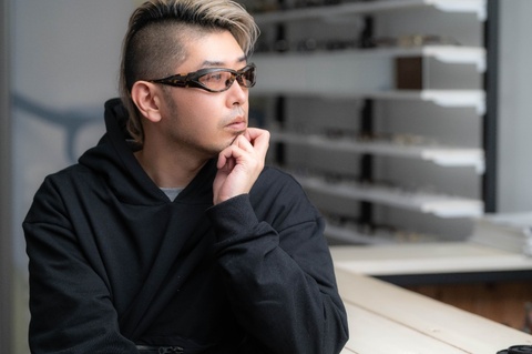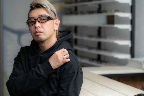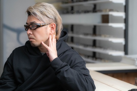 今回の撮影において、デモレンズはクリアではなく濃度28%のブラウンを組み合わせています。コロナ禍において、マスクをすることが前提となった今、レンズの濃度が濃いサングラスは使いにくく、レトロシリーズを中心に淡いカラーレンズの組み合わせをご提案してきましたが、大文字シリーズにも同じことがいえると思いますので参考にしてみてください。