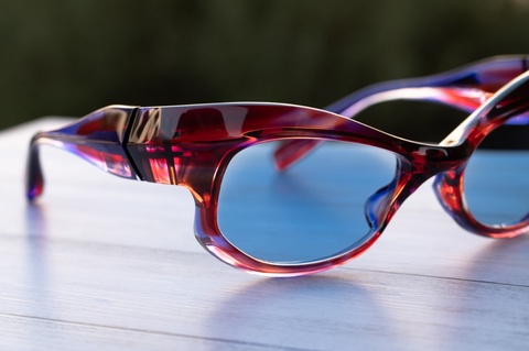 「FA-249」の鮮やかな赤紫と特徴的なブルーの調光レンズの組み合わせ、せっかくなのでこの機会にご紹介をさせていただきます。