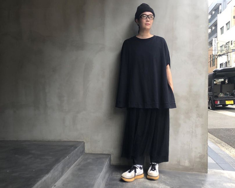 カーブのついた、天地狭めのブラックフレーム。今個人的に熱く、かなり注目しています。唯一無二のデザイン、FACTORY900だからこそ、いろんなスタイリングを楽しめるなと感じています。