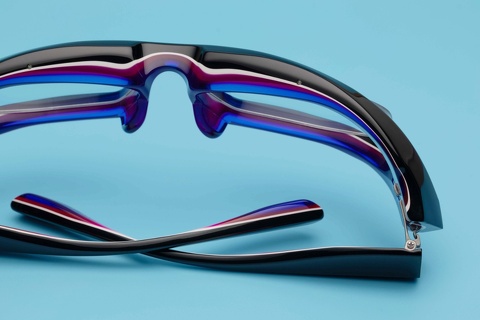 とはいえ、実際に掛けた印象はご覧の通り、やはりベースカラーを黒にしていることもあり、一歩引いてご覧いただくと背面の鮮やかな色合いはその気配を押し殺し、見る角度によって控えめに姿を現します。ベースカラーが黒といえば、空前の大ヒットとなったエメレーションランチ04も、実はトップのカラーは黒を採用していました。やはり目を惹くアクセントと使い勝手の良さとのバランスは大事ですね!