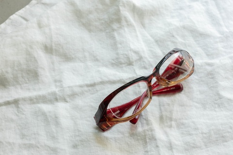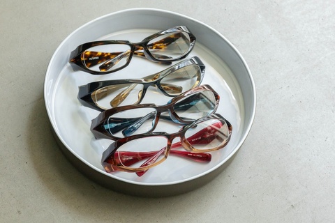 誰もが一度は憧れる「赤いフレーム」。多様なレッドフレームはありますが、このクリアなレッドとオレンジの貼り合わせでない”ツートン”はとても珍しいと言えます。鮮やかな赤でもこっくりとした赤でもでなく、透き通った赤のグラデーションに明るいオレンジとのツートンにしたことで、とても個性的でありながら、不思議と顔馴染みもよくスタイルしやすいカラーとなっています。