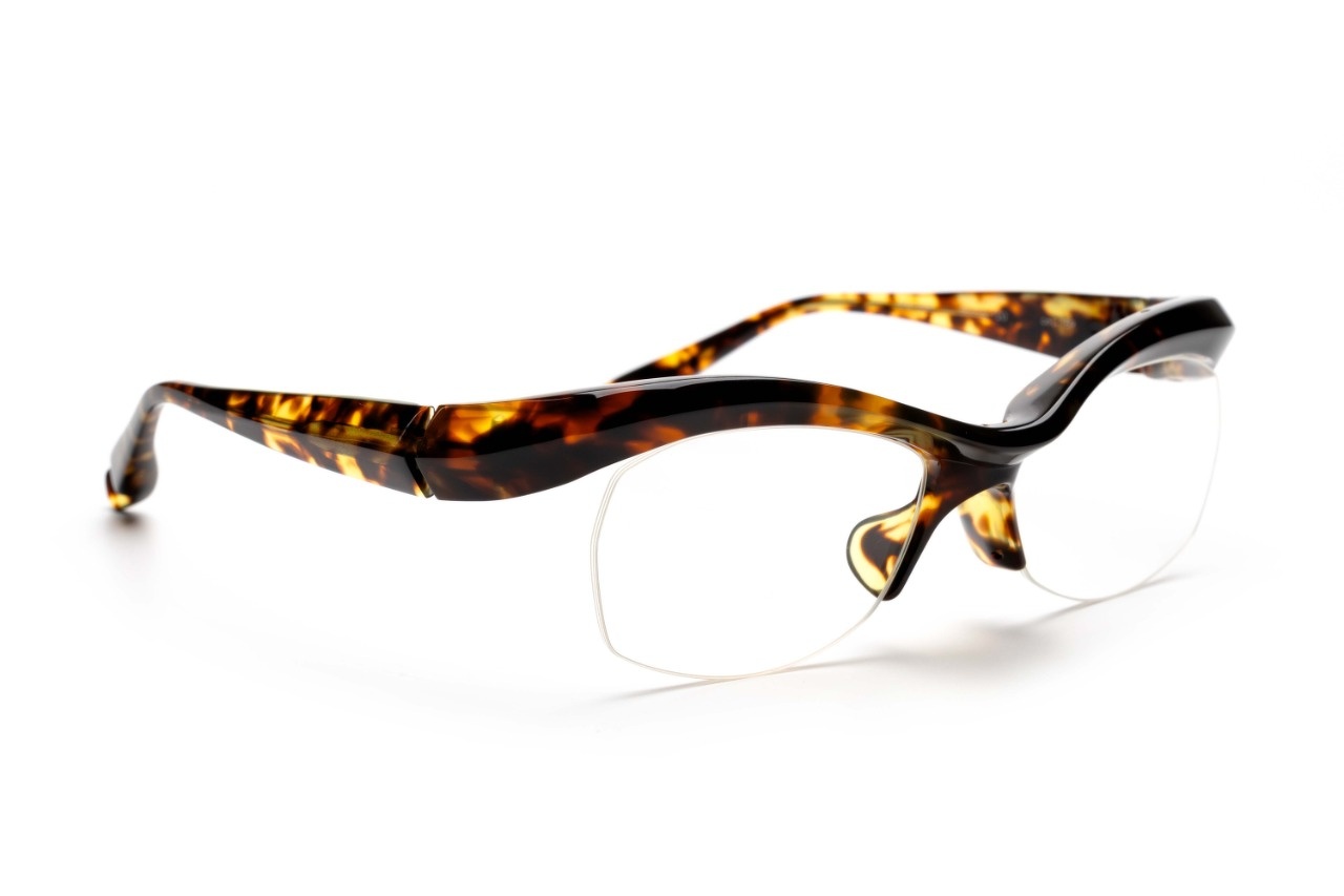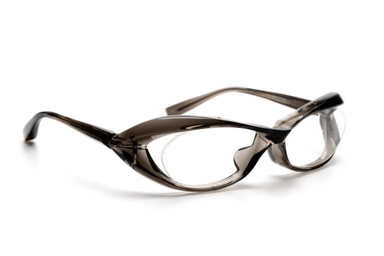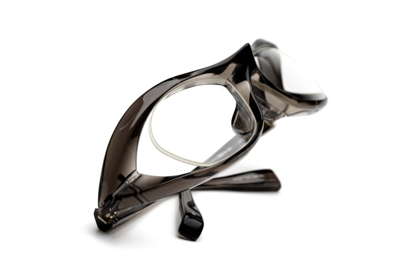 近年はレンズカーブも4カーブ設定が基本となるなか、当時はお顔を包み込むようなフロントカーブをトレースするように5カーブ設定を基本としており、ご覧のようにカーヴィーな曲面はどの角度から見ても美しく、お顔との一体感を演出します。