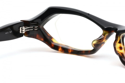 フロントの上下を別々のカラーで組み合わせる、言葉にするのは簡単ですがこれを商品として量産することがいかに困難であるか・・・むしろ、それを可能とする青山眼鏡の技術力の高さが垣間見れるとともに、異なるカラーの組み合わせによるスタイリング、立体パーツの組み合わせ方も含めた製造工程と、どれも「新しさ」と「可能性」を感じさせてくれたモデルであることは間違いありません。